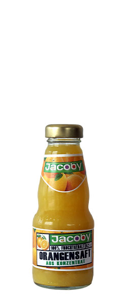 Diese Flasche Jacoby Spitzenqualität Orangensaft enthält natürliches Vitamin C. Eine gesunde Köstlichkeit aus ca. 3 Kilogramm sonnengereifter Apfelsinnen.